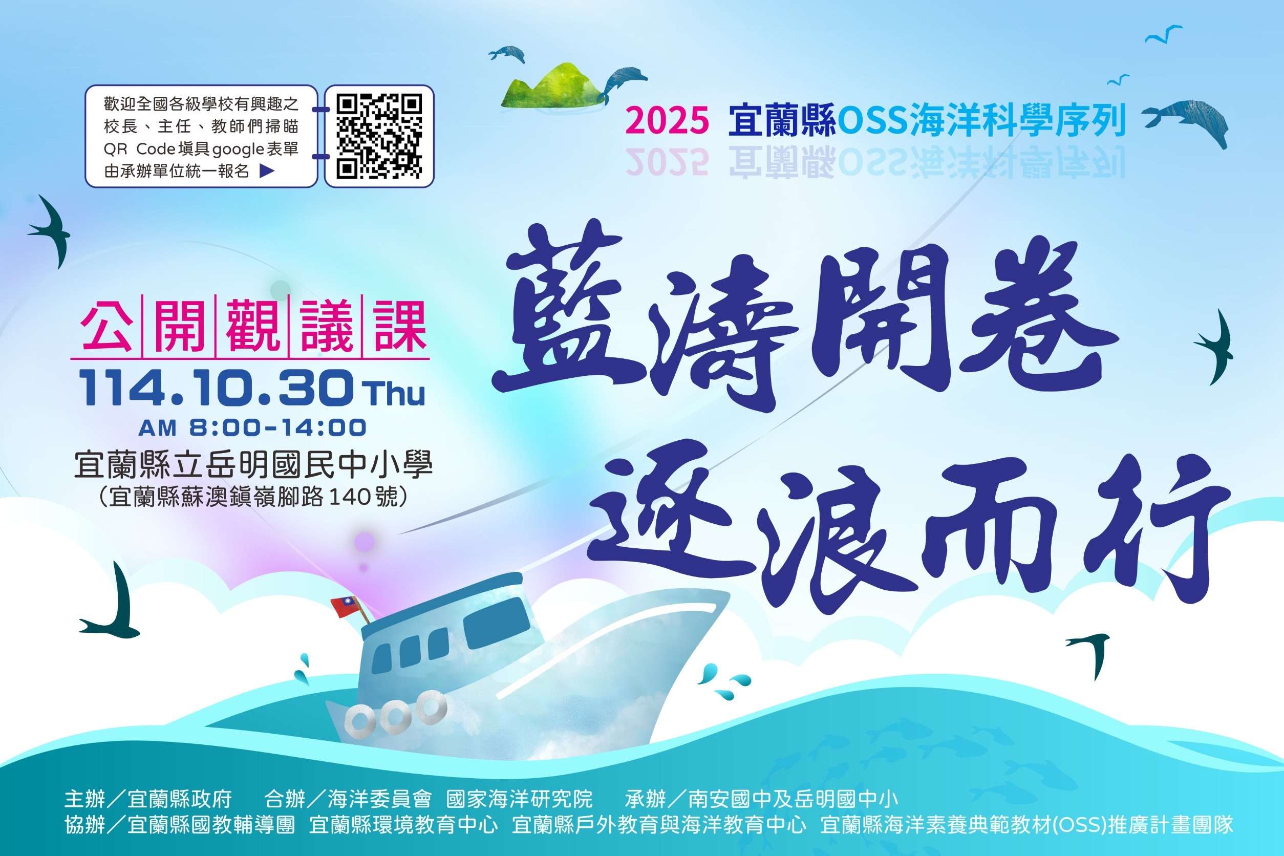 主旨: | 檢送「2025宜蘭縣OSS海洋科學序列『藍濤開卷,逐浪而行』公開觀議課成果會實施計畫」1份,請查照。 |